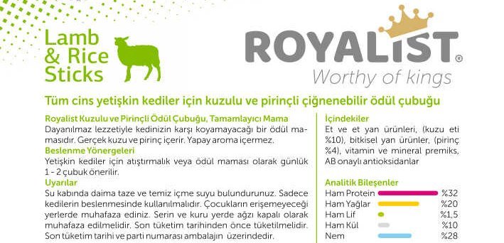 ROYALIST KEDİ KUZULU&PİRİNÇLİ STİCKS 20 GR