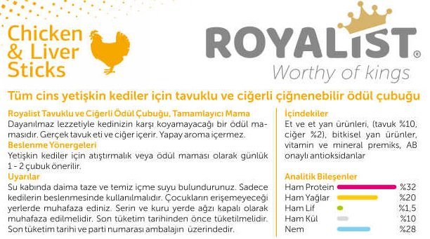 ROYALIST KEDİ TAVUKLU VE CİĞERLİ STİCKS 20 GR